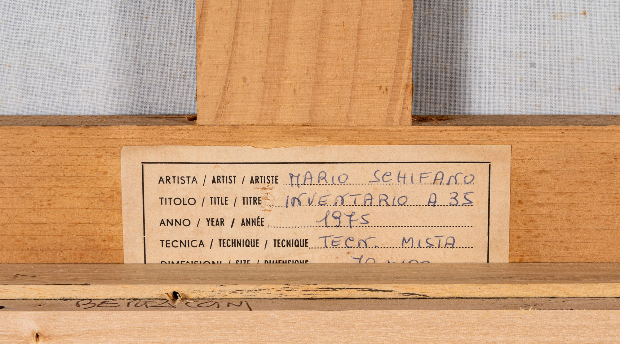 MARIO SCHIFANO(1934 - 1998)Inventario1973-1974Smalto su tela emulsionata70 x 100 cmFirma al retroOpera accompagnata da certificato di autenticità a cura dell'Archivio Mario Schifano, RomaPROVENIENZA:Galleria Sangallo, FirenzeCollezione privata, Torino