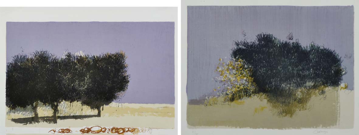 CAZZANIGA GIANCARLO Monza 1930 Paesaggi lotto di 2 litografie es. 21/75 cad. 40x54 cad. firma in basso a destra tiratura in basso a sinistra