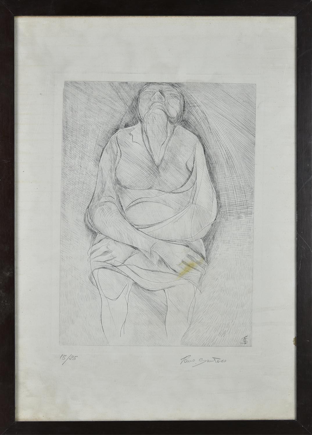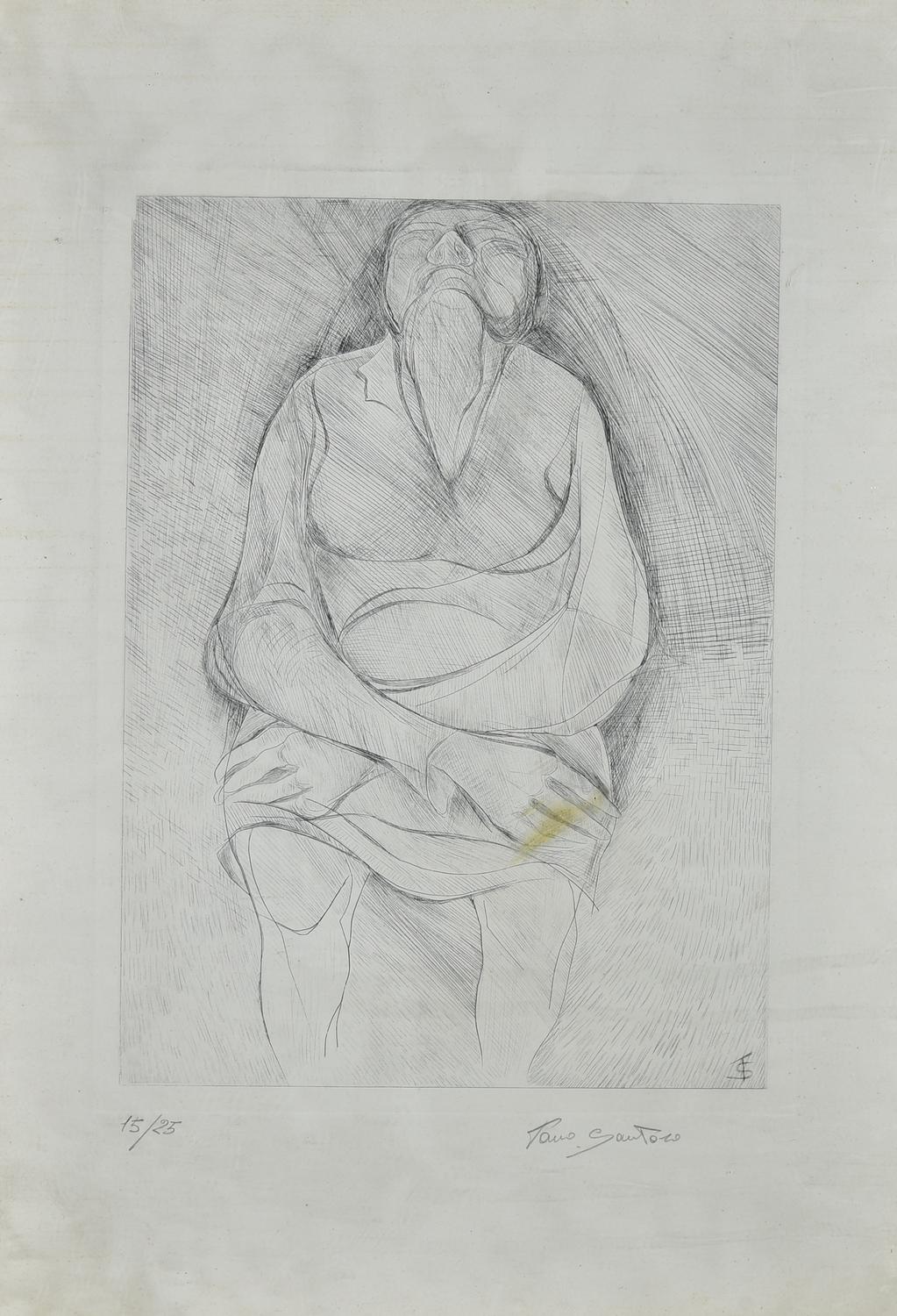 Tano Santoro DONNA ASSISA puntasecca, cm 34x25,5, su foglio cm 49x34; es....