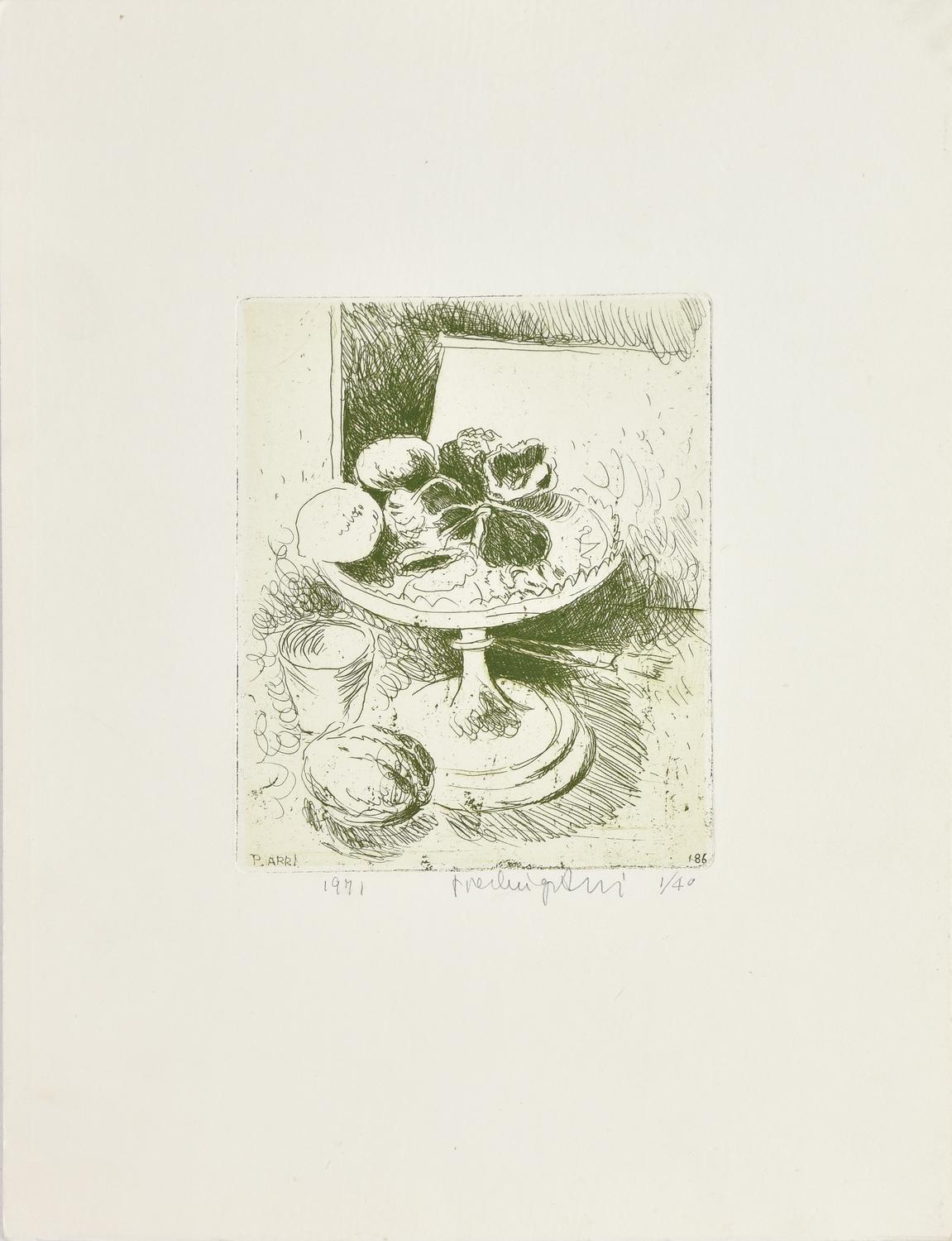 Pierluigi Arri NATURA MORTA, 1971 acquaforte, cm 16,5x12, su foglio cm 35x25;...