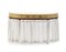 Toilette con due cassetti. Cantù, anni '50. Struttura in legno, rivestimento in pergamena, piano in cristallo rosambrato, maniglie e puntali in ottone. (cm 137x73x43,5) (lievi difetti)