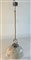Lampada a sospensione saliscendi in metallo cromato e vetro soffiato lattimo e incolore con inclusione di bolle. Italia, anni '70. (h cm 130; d cm 40). (lievi difetti)