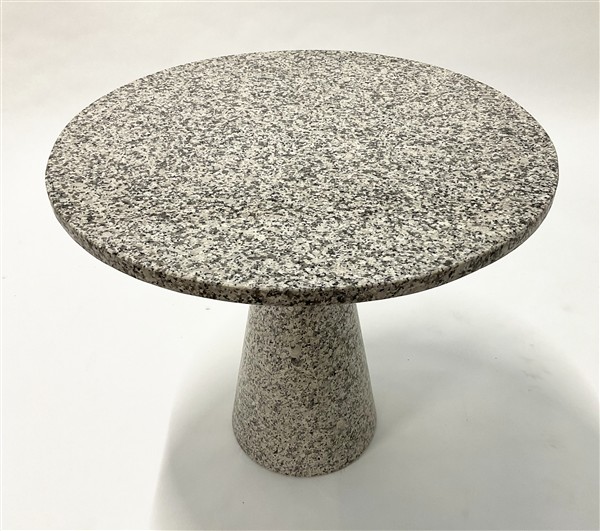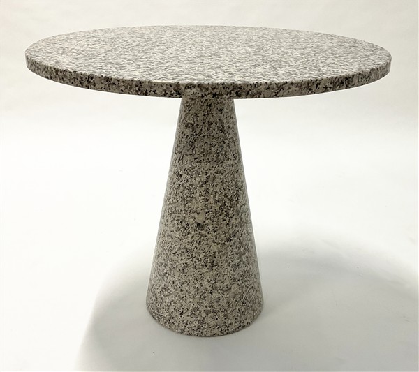 Tavolino in granito con piano circolare e fusto centrale rastremato. Italia, anni '80. (h cm 76; d cm 88)