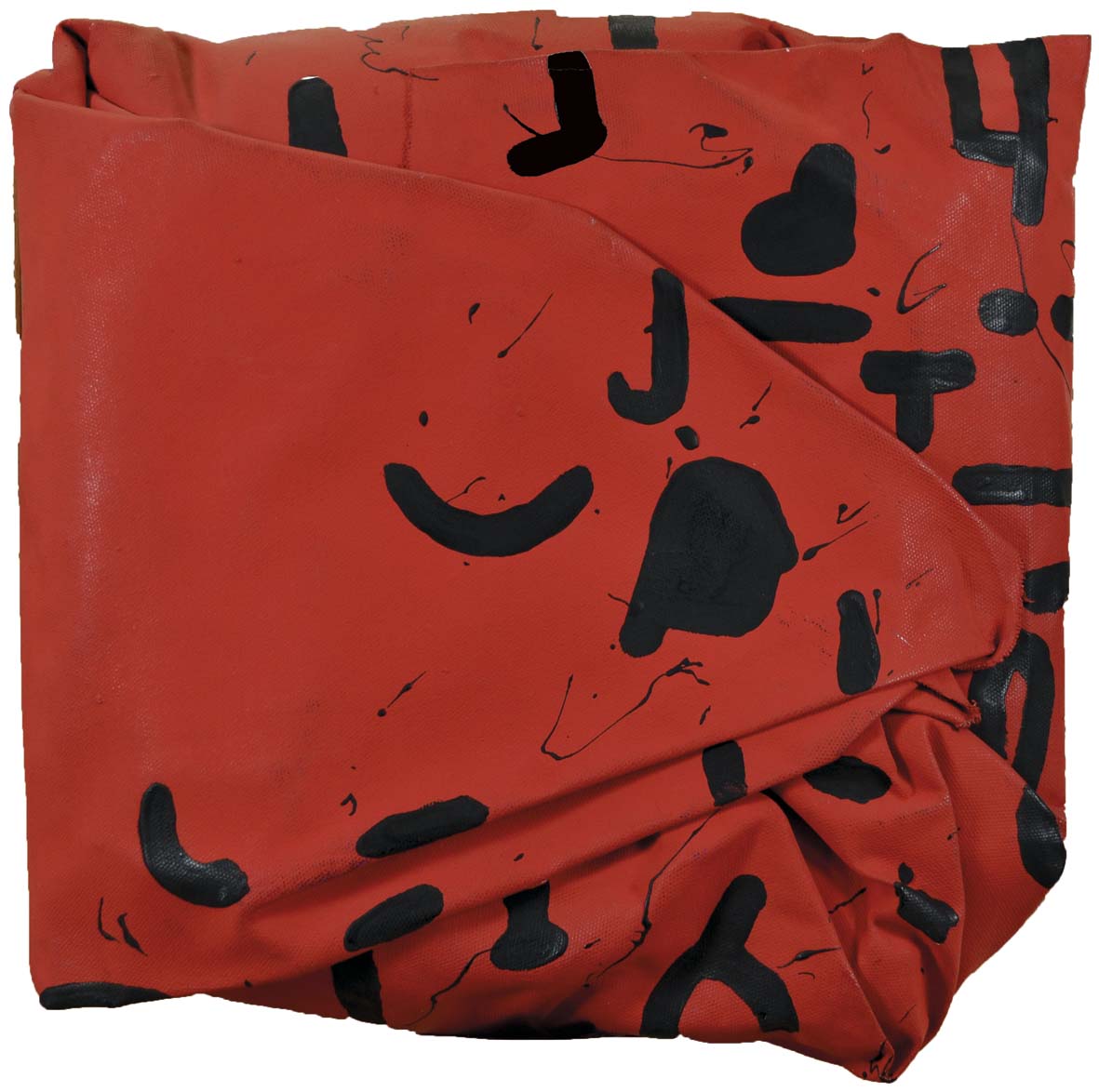 BERLINGERI CESARE Cittanova (Rc) 1948 Sul rosso piegato 2008 tecnica mista su tela piegata 42x42x10 firma data e titolo al retro autentica dell'Autore su foto