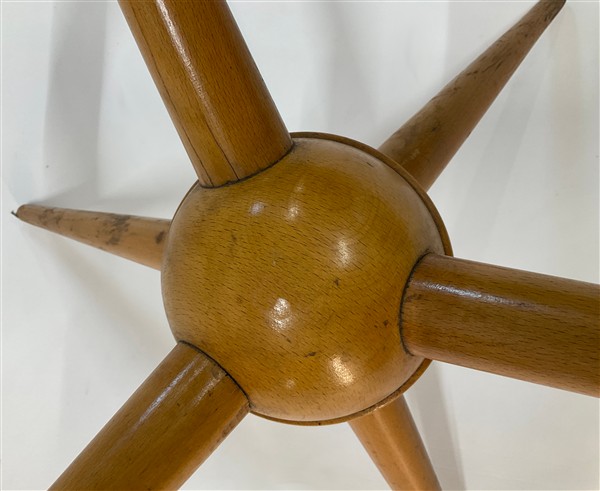 * Tavolino con struttura tripode retta da sfera. Italia, anni '50. (h cm 46; d