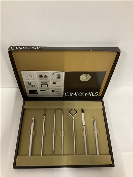 Collezione cilindrica da bar. Produzione Cini & Nils, Italia, 1969. Acciaio inossidabile, scatola originale. Modello esposto al Moma di New York. (difetti)