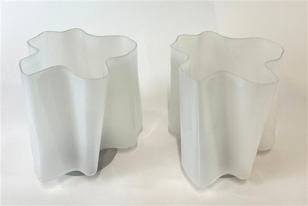 Coppia di plafoniere modello "Logico mini". Produzione Artemide, Milano, anni 2000. Alluminio, plastica e vetro incamiciato opalescente. (cm 20x19)