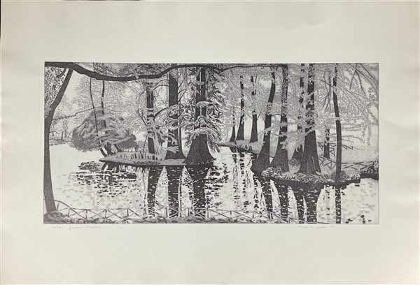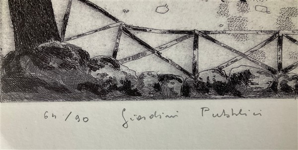 Federica Galli "Giardini pubblici" 1989 acquaforte (lastra cm 39,5x79,5; foglio