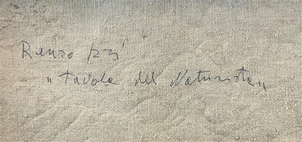 RENZO IZZI "Tavola del naturista" olio su tela cm 70x60 siglato in basso a dest