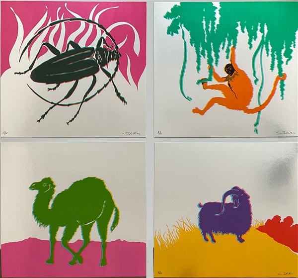 Gino Marotta "Scimmia - Muflone - Dromedario - Scarabeo" 1974 quattro serigrafie