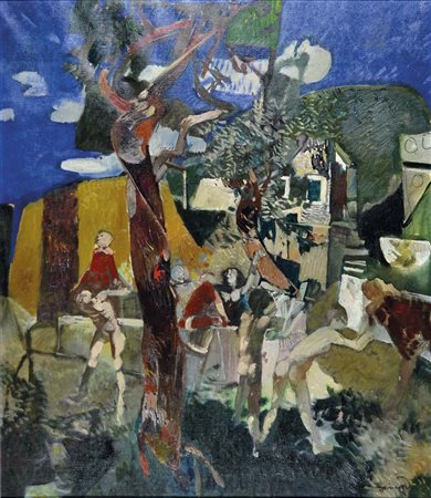 DINETTO LINO Este (Pd) 1927 Figure olio su tela 80x70 firma in basso a destra