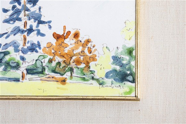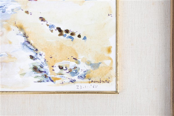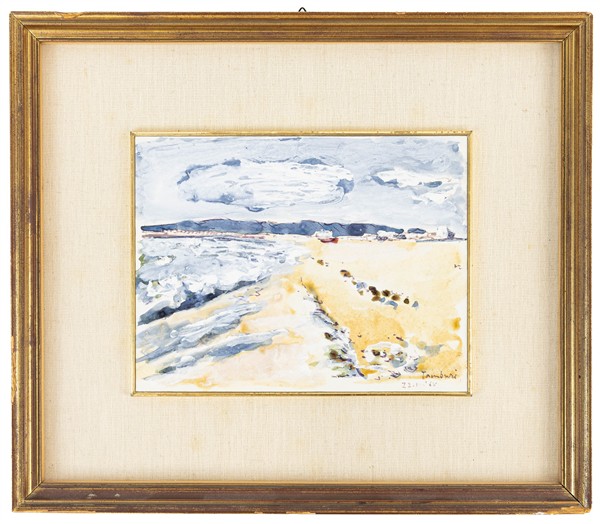 Orfeo Tamburi Due tecniche miste su carta raffiguranti marina e paesaggio con al