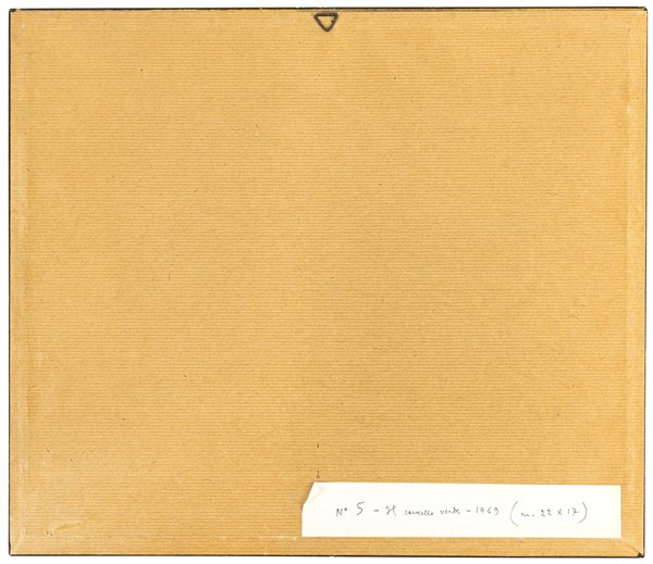 Orfeo Tamburi "Il muro verde" 1969 tecnica mista su carta cm 17x21,5 firmato in