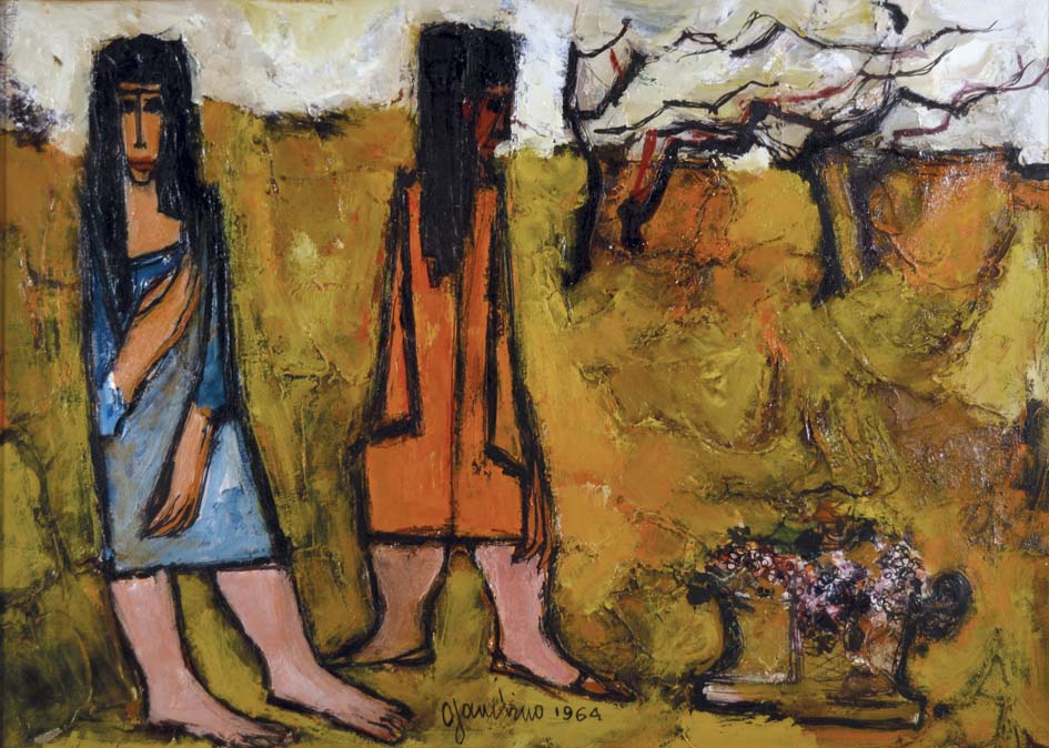 GAMBINO GIUSEPPE Vizzini 1928 - Preganziol (Tv) 1997 Bambine nella vigna 1964 olio su tela 50x70 firma e data in basso al centro firma data e titolo al retro Galleria Luce Venezia - timbro al retro