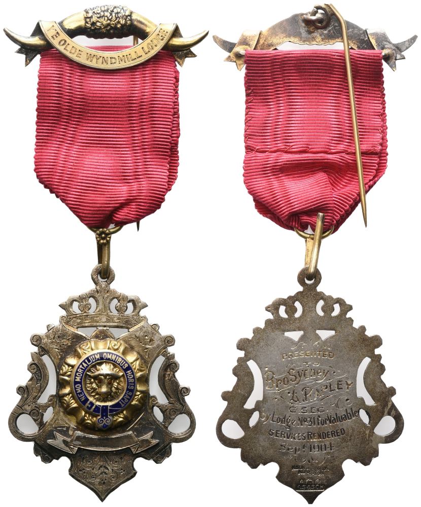 Presented To Bro Sydney L. Rapley C. Sec. By Lodge N°31 For Valuable Services Rendered, Sep. 1904. Peso: 22,26 g.