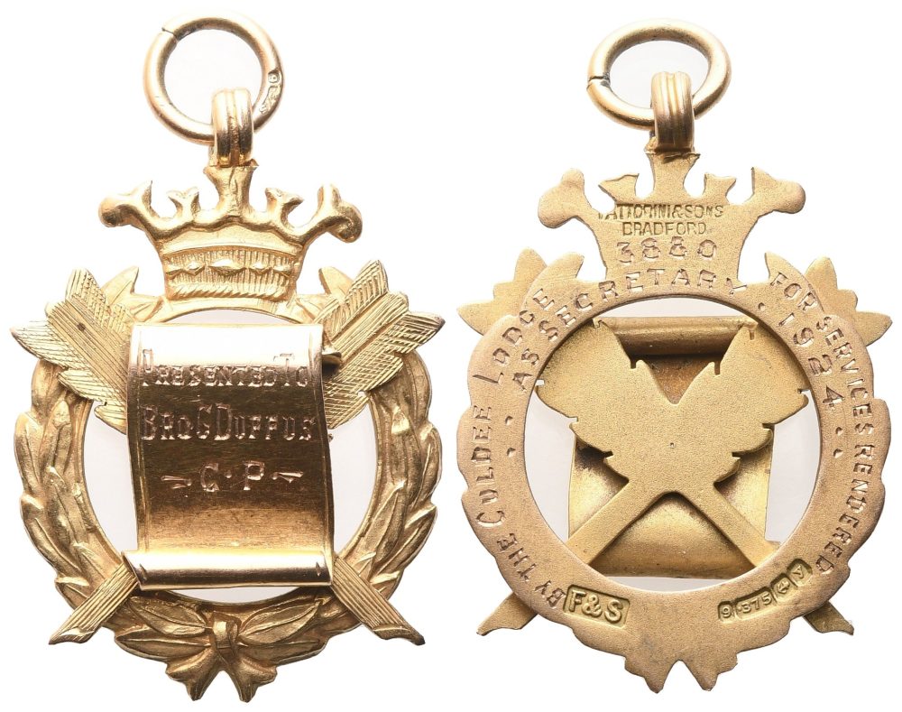 Medaglia "Presented To Bro. G. Duffus" C. P., 1924, AU (25,8 x 36 mm)