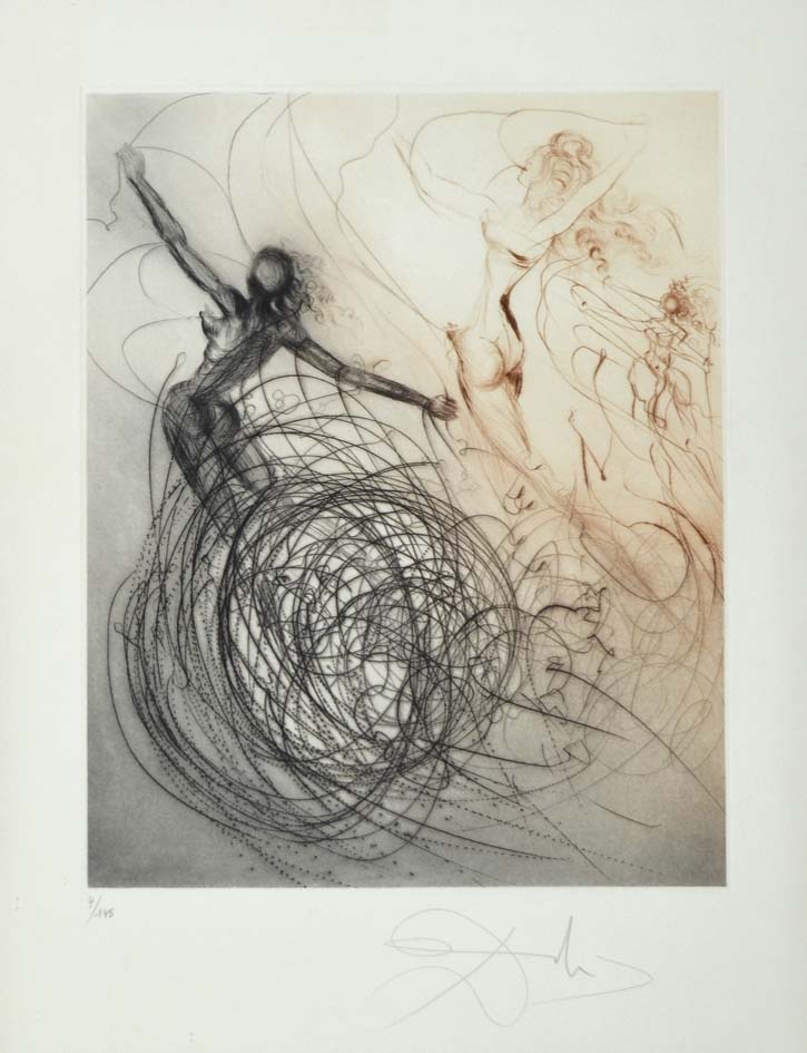 DALI' SALVADOR Figueres 1904 - 1989 Les femmes dans les vagues, Hippies 1969 puntasecca es. 4/145 39, 5x31,5 (lastra) firma in basso a destra tiratura in basso a sinistra timbro a secco Salvador Dalì in basso a destra