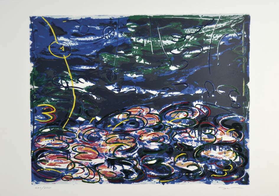 SCHIFANO MARIO Homs (Libia) 1934 - Roma 1998 Gigli d'acqua serigrafia es. XXII/XXXV 70x100 firma in basso a destra tiratura in basso a sinistra timbro a secco Mastrogiacomo Padova editore in basso a sinistra