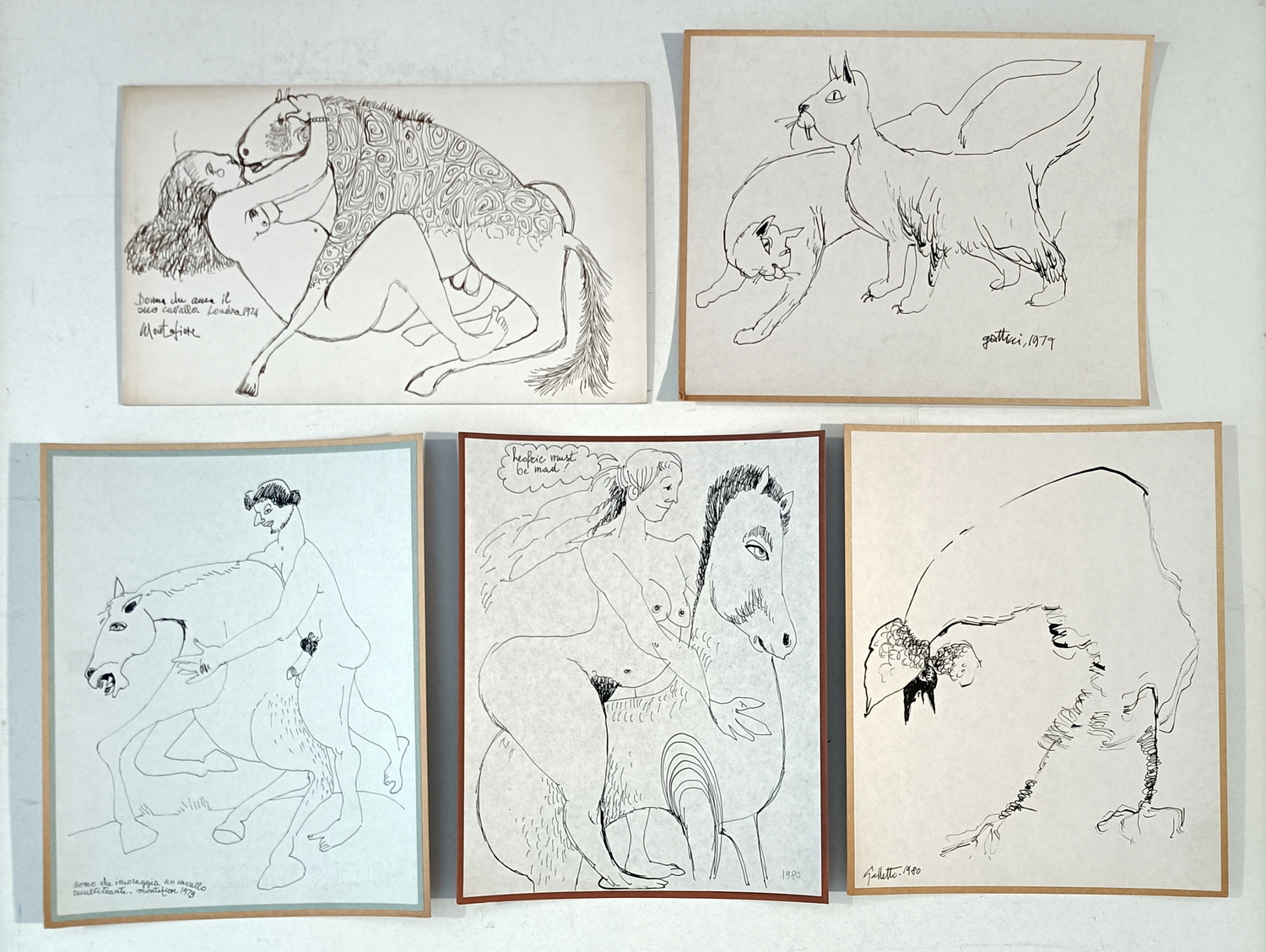5 disegni tutti firmati (misure cad. circa 30x20).