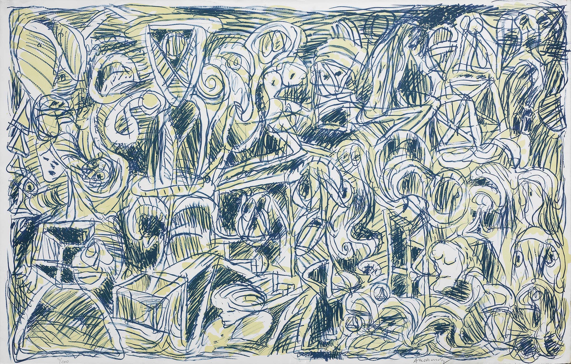 Pierre Alechinsky Bruxelles 1927 Problème démographique Litografia su carta, es. 5/100, cm. 65,5x102 Firma a matita sul margine in basso a destra: Alechinsky, tiratura in basso a sinistra: 5/100.