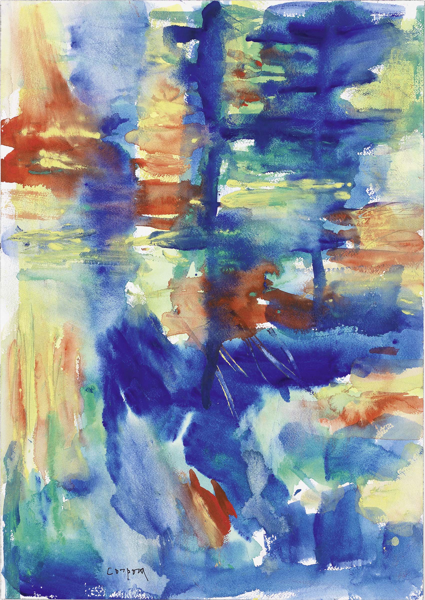 Antonio Corpora Tunisi 1909 - Roma 2004 Il mare a Valencia, 1996 Acquerello su carta, cm. 51x36 Firma in basso a sinistra: Corpora; titolo e firma al verso: Il mare a Valencia / Antonio Corpora. Foto autenticata dall’artista, con etichetta Giovanni di Summa arte moderna e contemporanea, Roma, 10 dicembre 2000. Bibliografia: Floriano De Santi, Corpora. Catalogo generale ragionato degli acquarelli dal 1930 al 2002, 1° volume, Giovanni Di Summa, Roma, 2004, p. 259, n. 415.