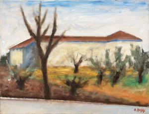 Ottone Rosai Firenze 1895 - Ivrea (To) 1957 Paesaggio con alberi e casa, 1955...