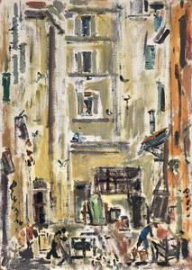 Filippo de Pisis Ferrara 1896 - Milano 1956 Scorcio di città, fine anni Trenta - inizio anni Quaranta Olio su cartone telato, cm. 69,8x49,4 Firma sul lato destro: Pisis. Al verso: timbro Galleria del Milione, Milano, con n. 2468. Opera archiviata presso l'Associazione per il patrocinio e lo studio della figura e dell'opera di Filippo de Pisis, Milano, 21 luglio 2011, con n. 03831.