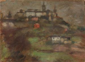 Ardengo Soffici Veduta di Collescipoli, 1945 Olio su cartone, cm. 35,5x47,8...