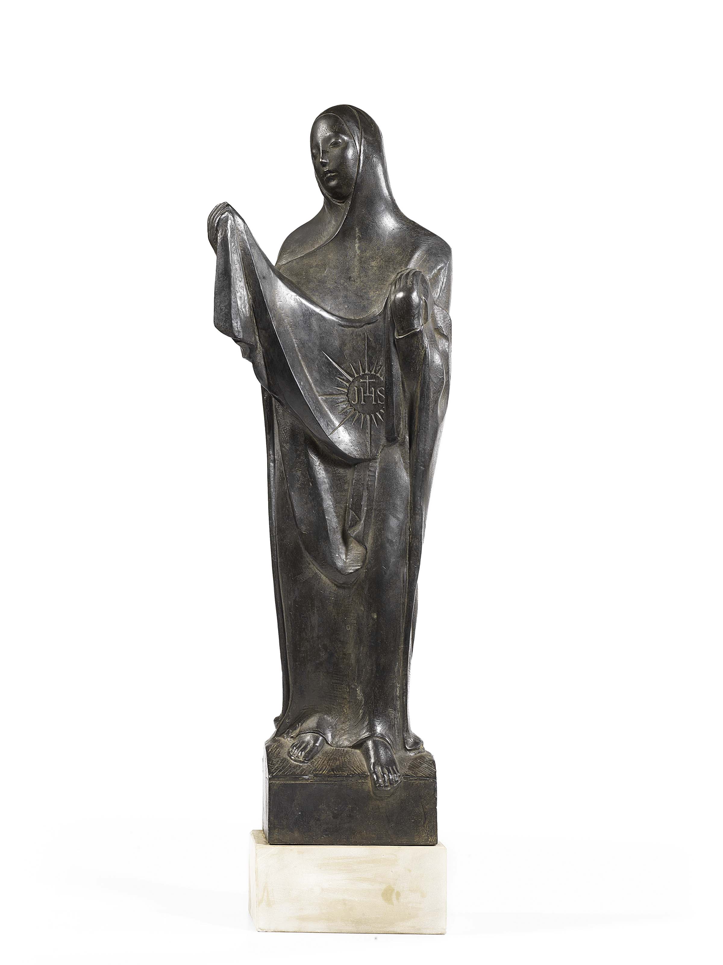 Libero Andreotti Pescia (Pt) 1875 - Firenze 1933 Veronica, 1920 Scultura in bronzo su base di marmo, cm. 63 h. Reca al verso il Pater Noster in caratteri latini. Certificato su foto di Lupo Andreotti in data 5 marzo 2009 (in fotocopia). Bibliografia di riferimento: Immagini del Sacro nell’arte toscana del Novecento, Pittura e Scultura, catalogo della mostra a cura di Marco Fagioli, schede a cura di Chiara Stefani, Montopoli Val d’Arno (Pisa), 22 maggio - 20 giugno 2004, pp. 61, 62, 113, tav. 17; La cultura europea di Libero Andreotti, catalogo della mostra a cura di Silvia Lucchese e Claudio Pizzorusso, Firenze, Museo Marino Marini, 12 ottobre 2000 - 13 gennaio 2001; Catalogo della Gipsoteca Libero Andreotti, a cura di Ornella Casazza, Firenze, Il Fiorino, 1992; Claudio Pizzorusso, Silvia Lucchesi, Libero Andreotti. Trent’anni di vita artistica - Lettere allo scultore, Firenze, 1997.