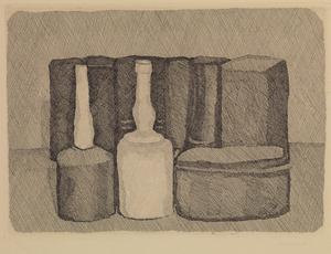 Giorgio Morandi Bologna 1890 - 1964 Natura morta con nove oggetti, 1954 Acquaforte su rame, es. 80/100, cm. 18x25 (lastra), cm. 38,5x49,3 (carta) Firma e data in lastra in basso a destra: Morandi 1954, firma a matita sul margine in basso a destra: Morandi, ti- ratura in basso a sinistra: 80/100. Primo stato su due. Tiratura di 100 esemplari numerati da 1 a 100 per l'Associazione Amatori d'Arte, Roma, di 10 esemplari numerati da I a X per l'artista e due prove di stampa. Bibliografia: Lamberto Vitali, L'opera grafica di Giorgio Morandi, Giulio Einaudi Editore, Torino, 1964, n. 115; Michele Cordaro, Morandi incisioni. Catalogo Generale, Edizioni Electa, Milano, 1991, p. 133, n. 1954 1.