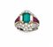 Anello in oro bianco, smeraldo, rubini e diamanti