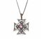 il pendente modellato come una croce di Malta traforata, il profilo realizzato ad una fila di brillanti, parte centrale decorata da uno spinello rosa ovale e quattro zirconi azzurri a goccia montati entro cornici in brillanti per ct 2.03, la catena in oro brunito a maglia sottile intercalata da brillanti, punzone 18 kt, g 10