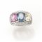Anello in oro bianco, zaffiro giallo, rosa, blu e diamanti, corredato di certificato Stalwart