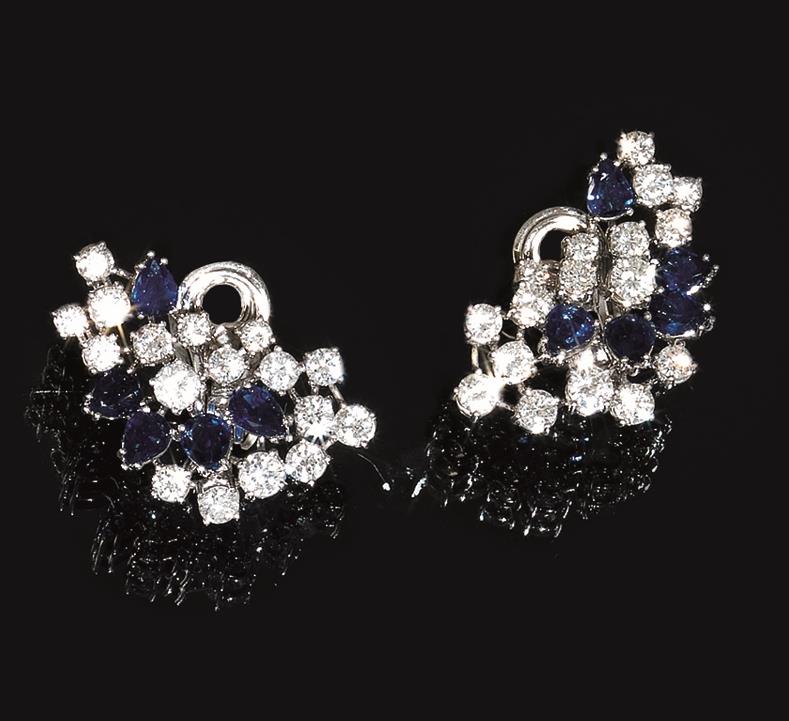 Paio di orecchini in oro bianco, zaffiri e diamanti