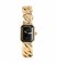 Cassa rettangolare scantonata con fondello a scatto, corona cabochon, vetro zaffiro molato. Quadrante laccato nero senza indici, lancette oro. Movimento firmato al quarzo. Bracciale a maglie ovali in oro lucido con con fermatura rettangolare marcata Chanel. Dim. mm 20x26, g 83 lordi