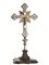 in rame argentato e dorato, croce decorata da volute, base in legno di forma sagomata non pertinente, alt. cm 89, lievi danni