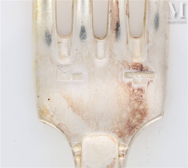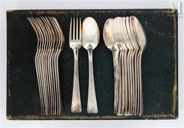 ERCUIS - Ménagère en métal argenté Douze grands couverts, modèle Art Déco...