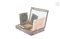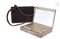 Con decorazione cesellata a guilloché geometrico, si apre con un'anta superiore ricoperta da uno specchio e rivela tre scomparti, di cui due coperti, e un porta rossetto.