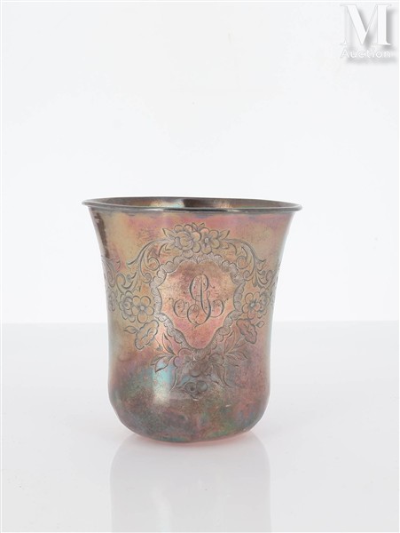 Timbale en argent De forme tulipe, en argent ciselé d'un décor d'entrelacs...