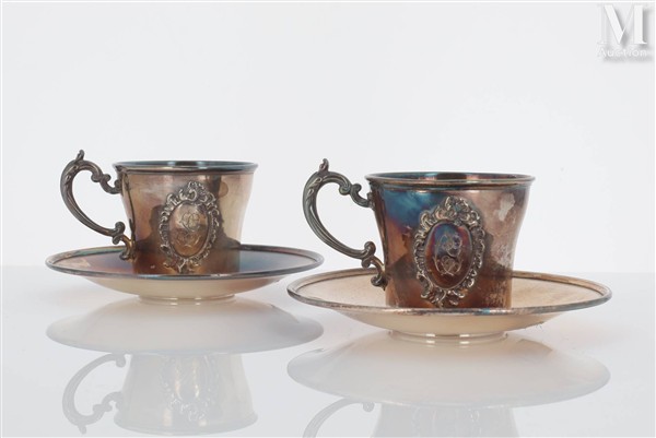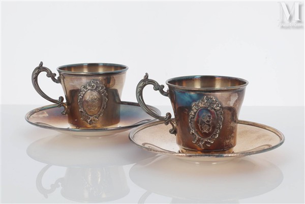 Paire de tasses à café et leurs sous-tasses en argent