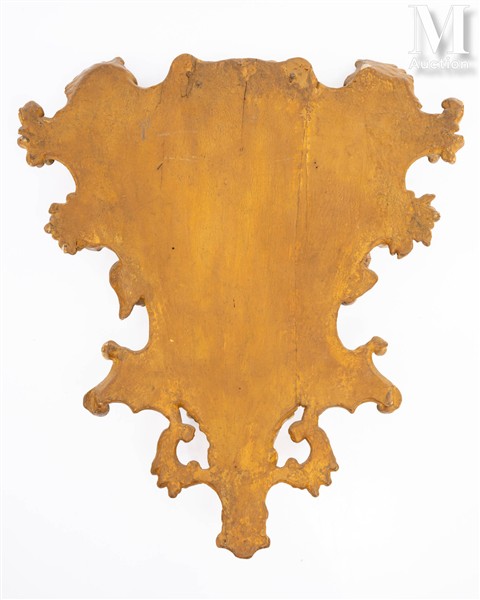 Bénitier En bois sculpté et doré, de forme violonnée à décor rocaille épaulé...