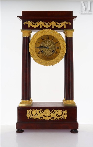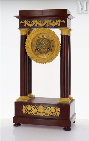 Pendule portique en acajou Pendule portique en acajou et placage d'acajou à 4...