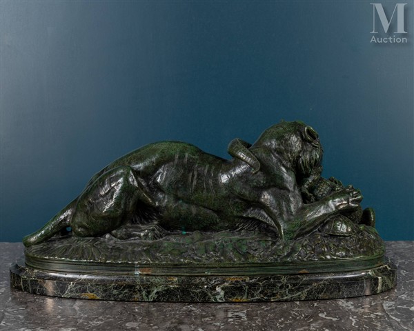 Antoine Louis BARYE (1796-1875), d'après Tigre dévorant un gavial Épreuve en...