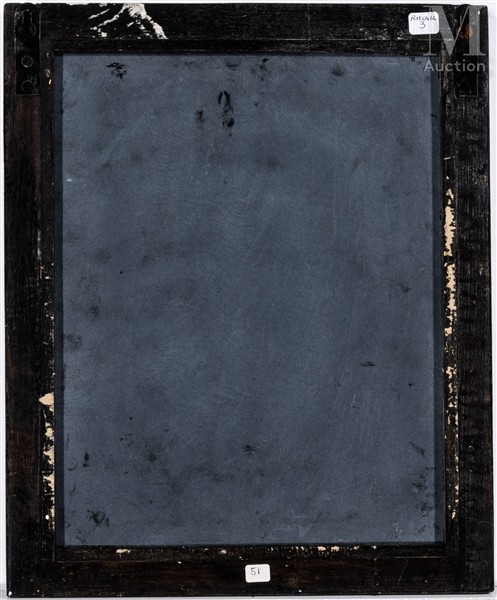 PIETRA DURA Plaque en marbre noir de Belgique à décor d'un vase fleuri en...