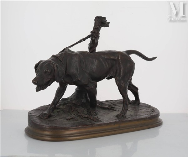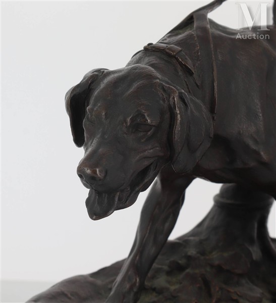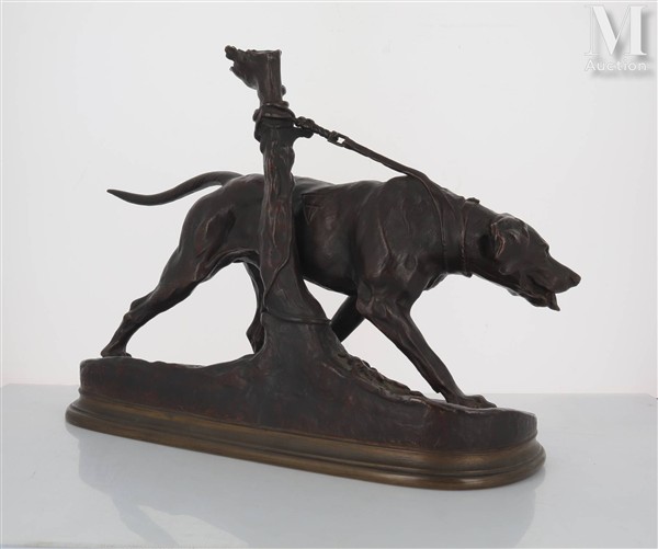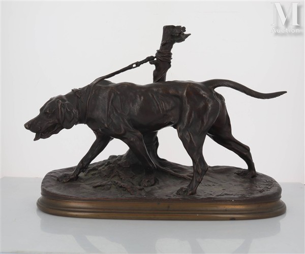 Pierre-Jules MÈNE (1810-1879) Chien limier à l'attache Bronze à patine...