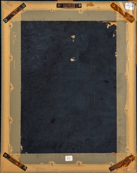PIETRA DURA Plaque en marbre noir de Belgique à décor en incrustations de...