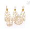 Comprende tre caraffe con i relativi tappi, un piatto per caramelle e un bicchiere.