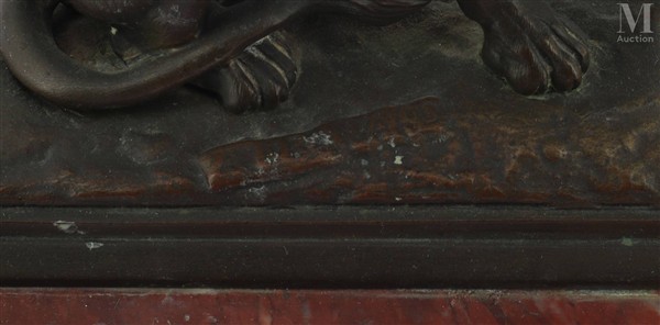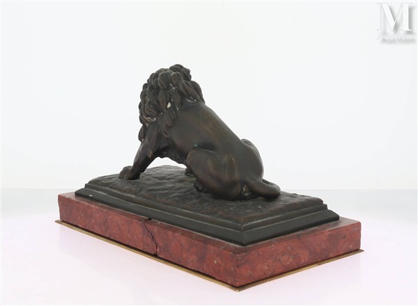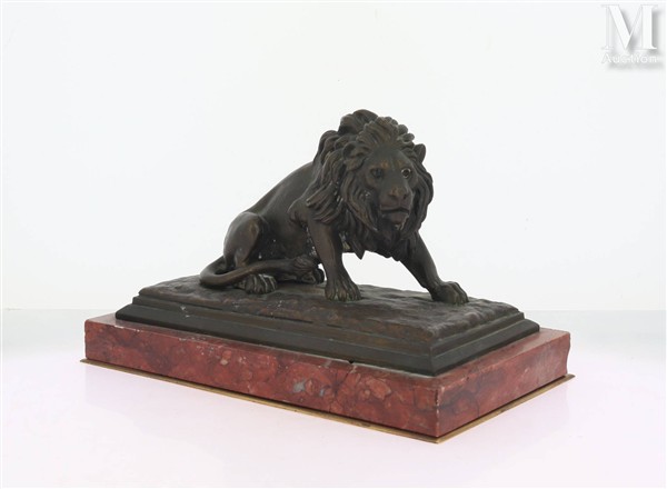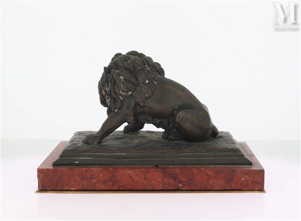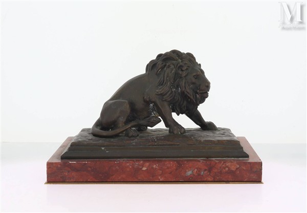 A.LEONARD, d'après Lion assis Sculpture en bronze à patine brune Signée dans...