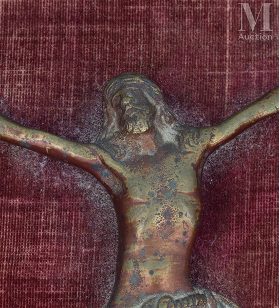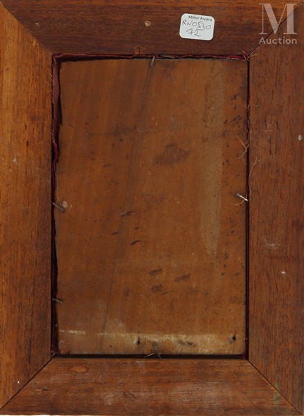 Racchiuso in cornice in legno rivestita in velluto rosso di epoca successiva