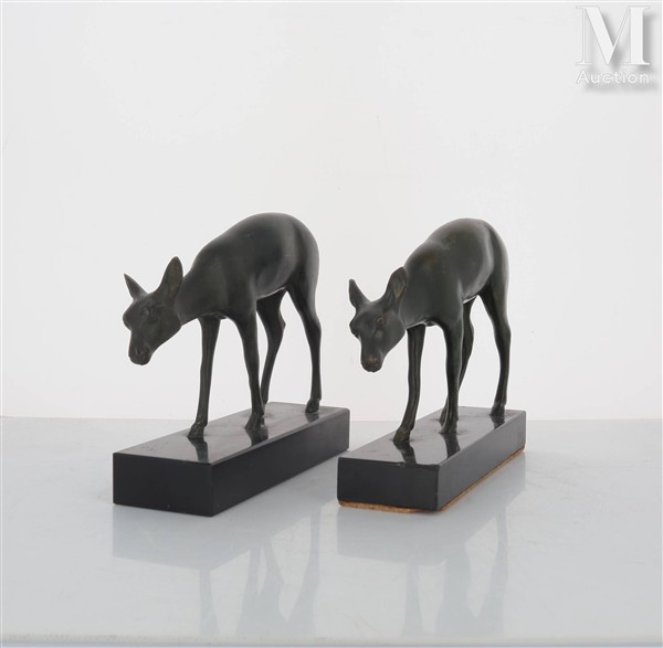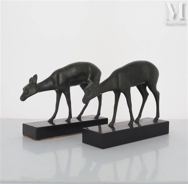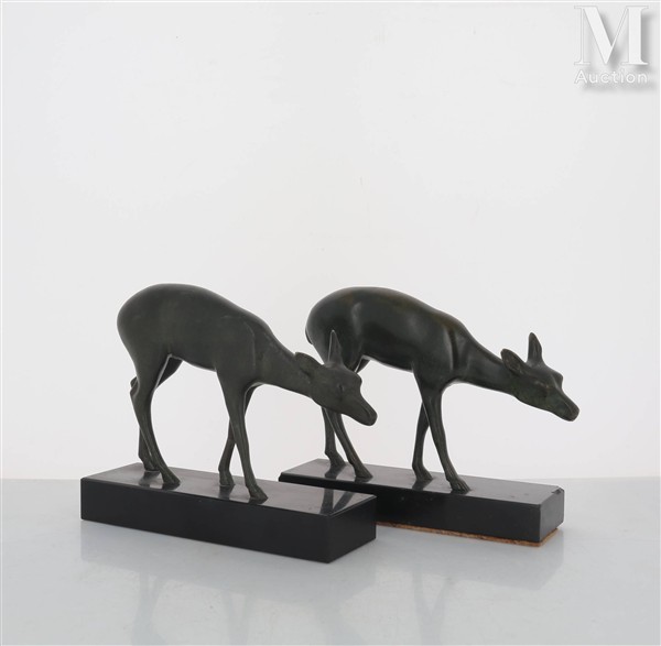 LUC Deux biches Sculptures en bronze à patines brunes. Une signée sur la...